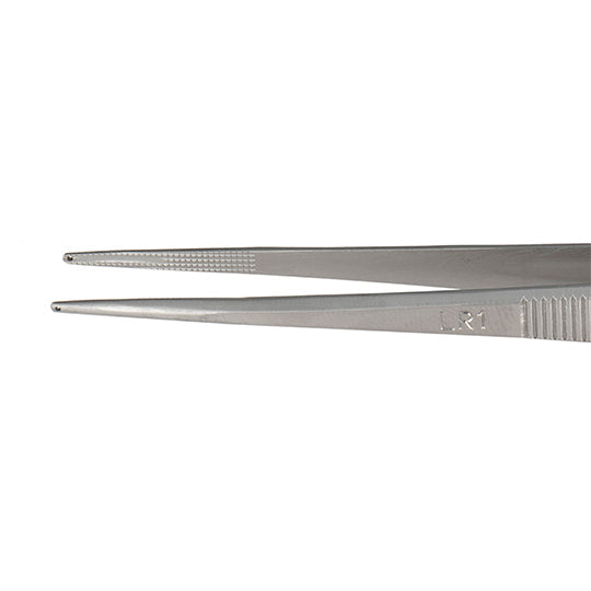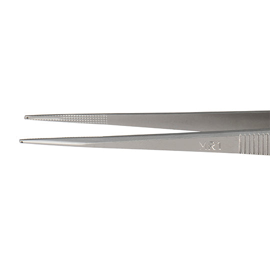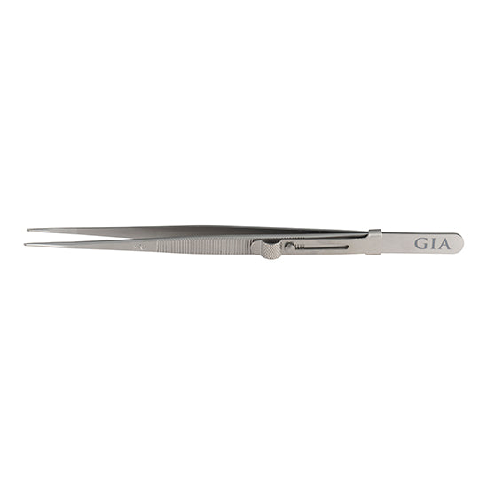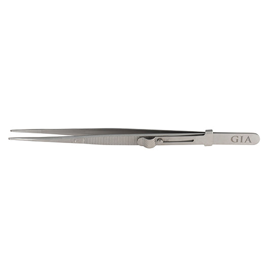 Tweezers with hole, serrated handles, and tips with groove and locking system. These strong tweezers have a superior stainless steel finish, making for a great toolkit addition.