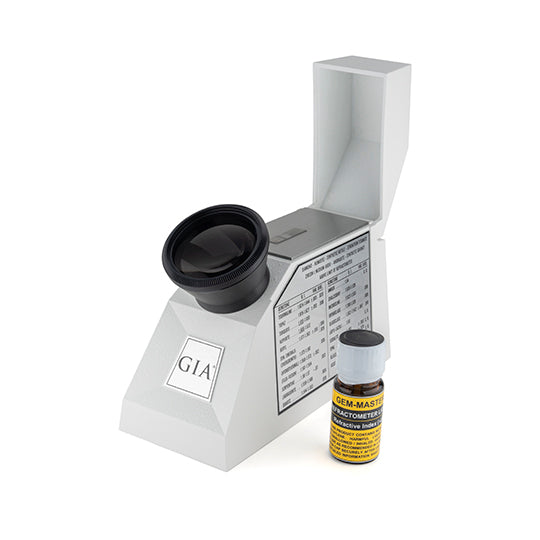 The only refractometer designed to "spot" read cabochons or small facets with diameters less than 1mm. Top of the line desk model with removable eyepiece magnifier that enlarges RI scale image. Hinged lid protects glass working area from dust & abrasion. Refer to affixed chart of most-used RI's. Polarizing Filter, dust cover & RI liquid included; ten (10) gram bottle.